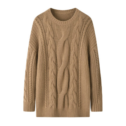 Women’s Thick Long Sleeve Korean Crewneck Sweater Autumn Winter Warm Casual Top Fresh Fashion Solid Color Cable Knitted Clothing