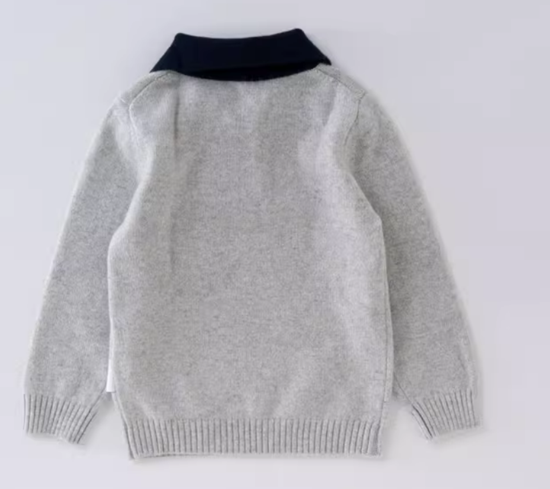 Autumn Winter Kids Boys Sweater 100% Pure Cashmere Men Wool Color Spliced Turn-Down Collar Pullovers Sweater