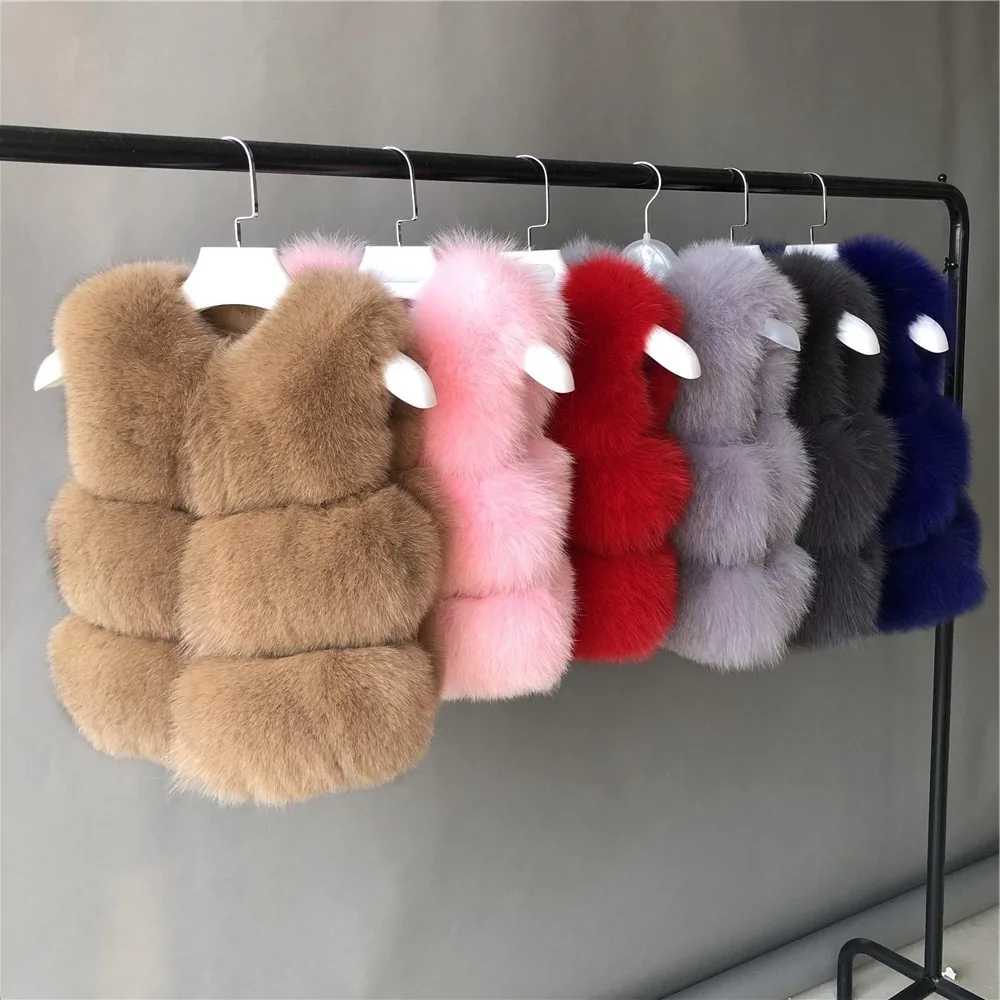 Wholesale Kid Autumn Genuine Fluffy Fox Fur Gilet Custom Boys Girls Custom Winter Real Fur Baby Vests