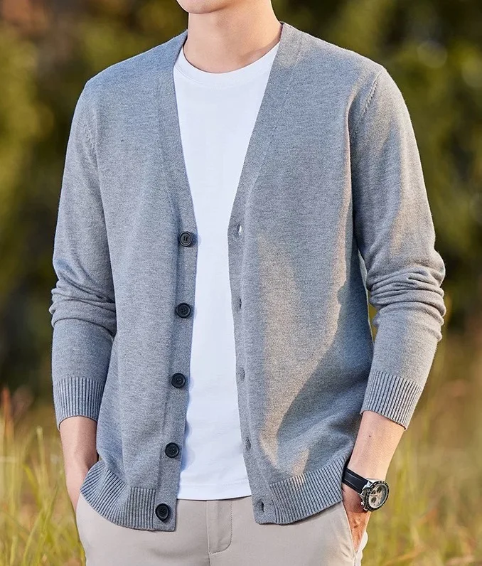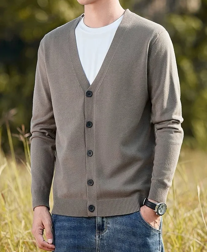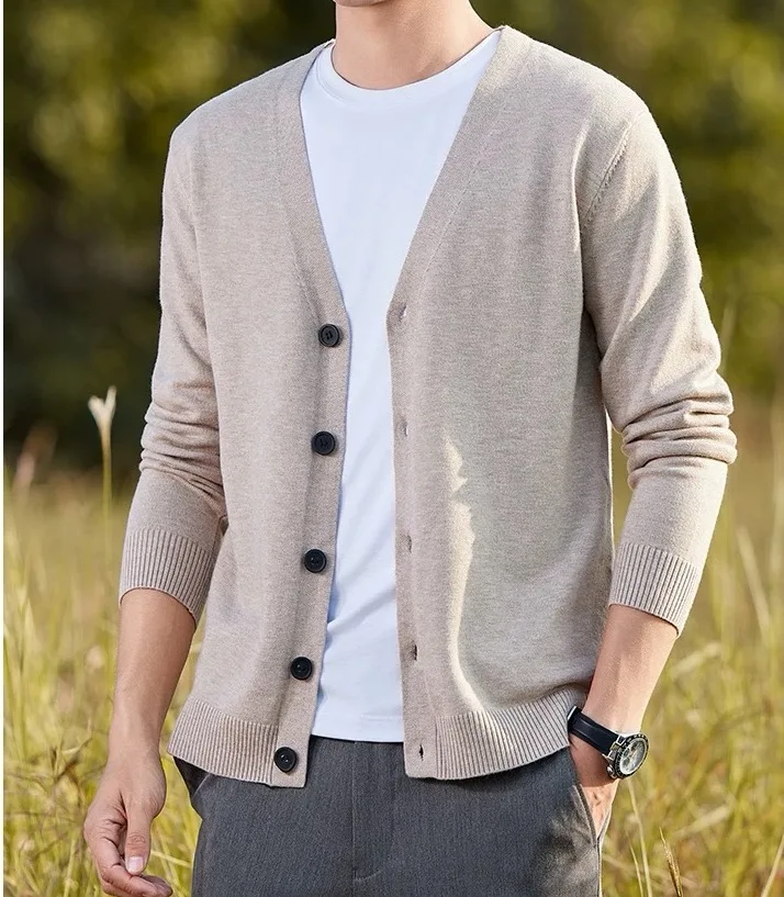 Wholesale Price Classical Office Wear V Neck Button up Knitted 100% Cashmere Cardigan Sweater Men’s Daily Basic Knitwear for Men