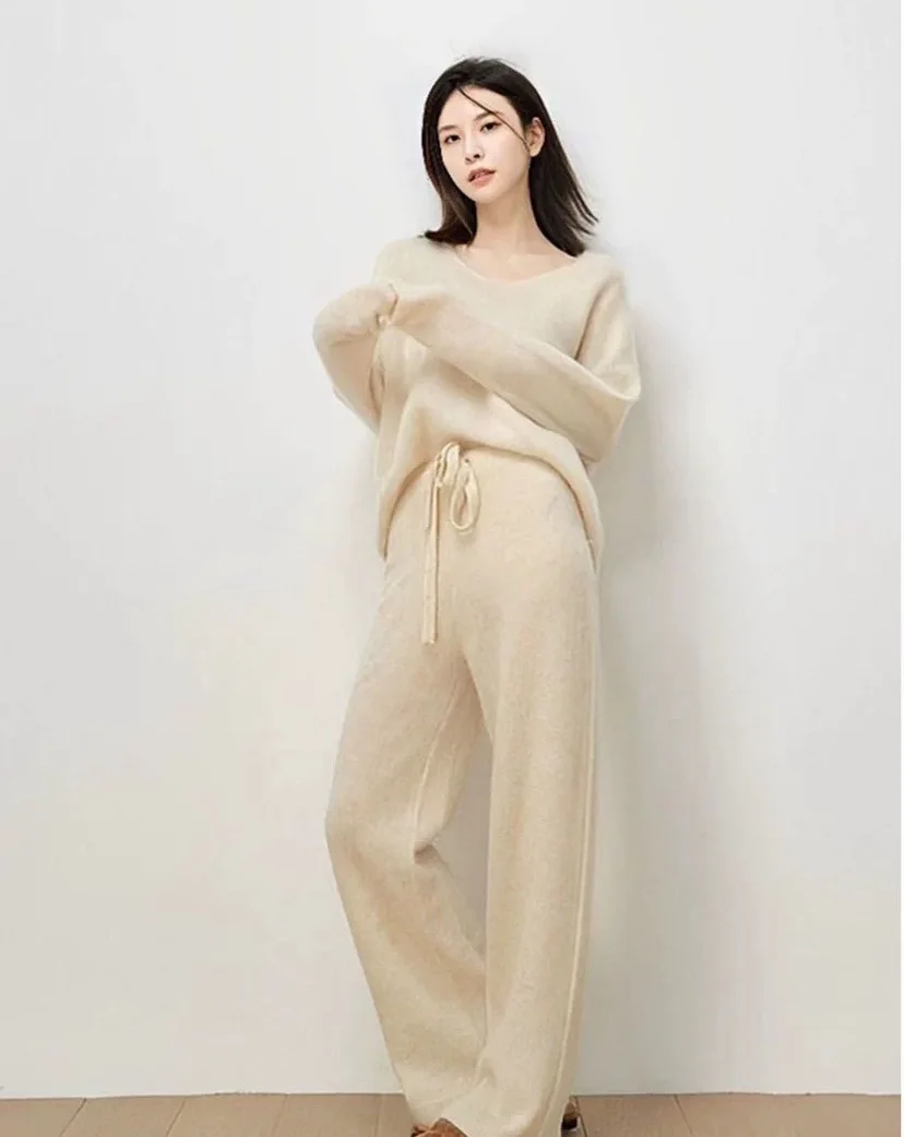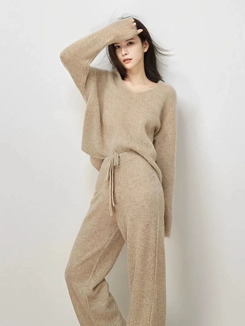 1 review for Women’s Casual Soft Breathable Cashmere Sweater Set Lady Loose Clothes 2-Piece Set Customized Color Knitted Twin Set for Autumn