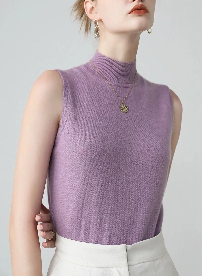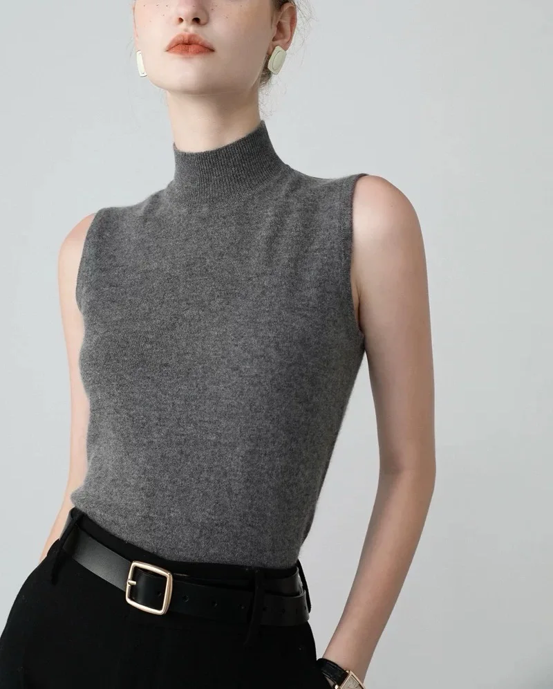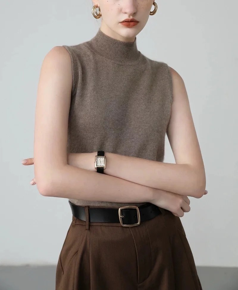 NARI Women Cashmere Turtle Neck Sleeveless Sweater Pullover Summer Luxury Tank Top From Inner Mongolia Erdos